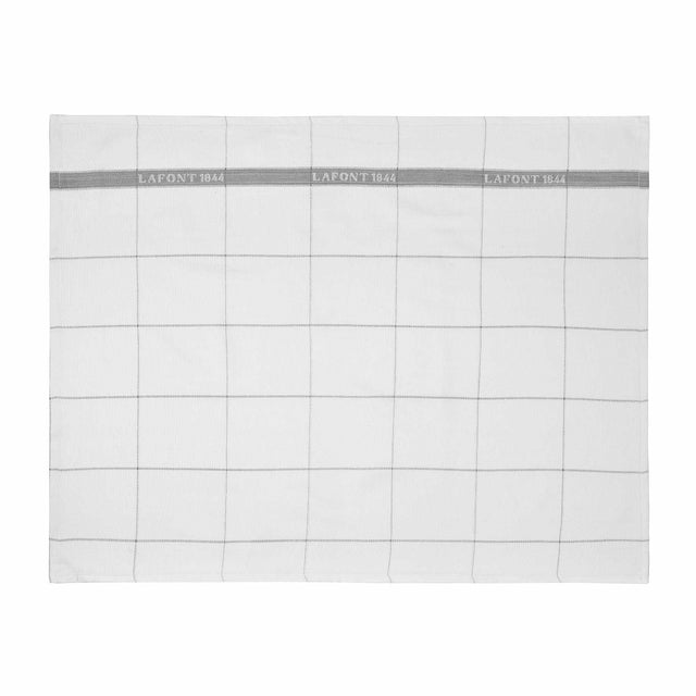 White and grey check tea towel with signature LAFONT trim. With tea towel hook. Designed in France.