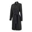 Plunging officer collar | Mesh panels | Front closed with hidden snaps | Welt pocket on left sleeve | Filled bottom of sleeve by 5cm
