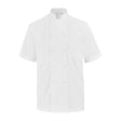Cotton brings its hard-wearing comfort to a classic and chic chef jacket. The short-sleeve PEELER chef jacket features a modern stand collar, a practical double-breasted fastening with white domed snap fasteners, an inside chest pocket, and embroidered underarm air vents to keep you cool during service.