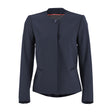 A fully-lined classic with darts and internal red trims. The comfortable and sleek VENDÔME women's blazer has waist seams and is made from 53% recycled polyester, 43% wool and 4% stretch elastane. It has a centre front fastening with 3 faux horn buttons and metal settings (1 exposed and 2 concealed buttons) and cuffs with buttons and fake buttonholes. This women's blazer has a round neck, 2 piped pockets and a hanging loop inside the collar.