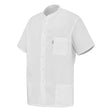 Its central snap button closure allows for quick and effortless dressing, making it ideal for busy professionals. This short-sleeved work tunic features an officer collar, along with two spacious lower pockets and a chest pocket, providing convenient storage for professional tools and personal items.